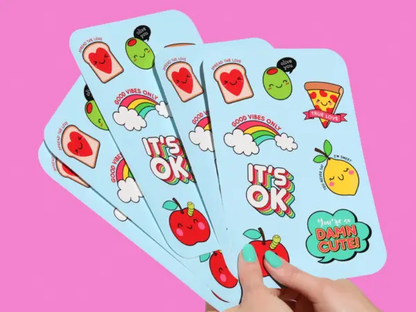Our sticker sheets let you combine different illustrations, shapes, and more on a single sheet. Available in two popular finishes: Matte for a smooth, refined look, and Gloss for vibrant, eye-catching colors. With a fast 2-day turnaround, your custom sticker sheets are perfect for any project!