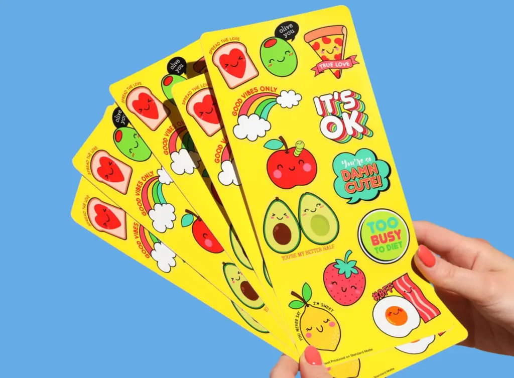 Transparency allows for the glitter to show through, and inks at 100% will print opaque with no glitter effect. However, we can use partially transparent inks to achieve a subdued glitter effect in the designs (if subdued glitter is your thing?